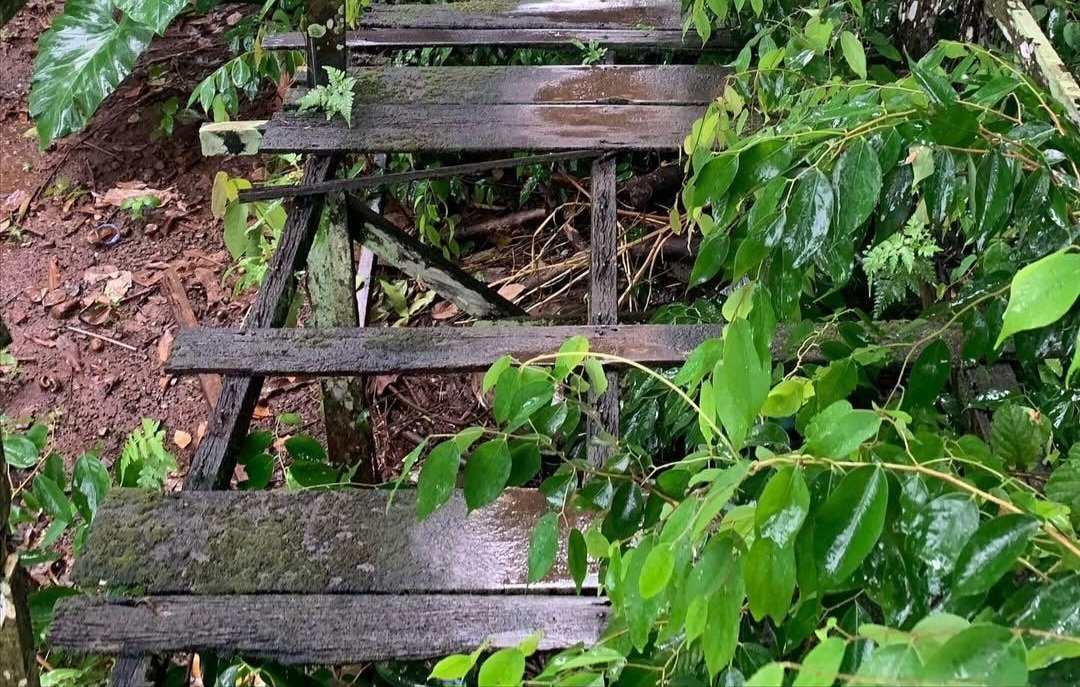 Titian dengan panjang sekitar 70 meter dan lebar 1,5 meter itu mengalami kerusakan cukup parah. Lantai kayu yang bolong-bolong akibat sering terendam air membuat warga harus ekstra hati-hati, terlebih saat banjir karena lubang tidak terlihat dan berisiko menyebabkan terperosok.