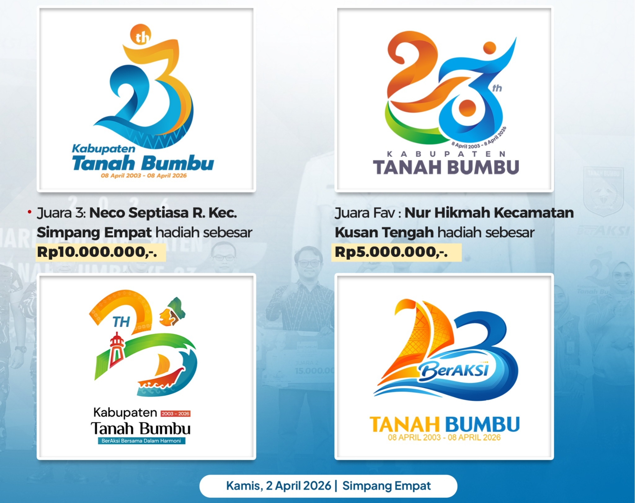 Adapun peraih juara pada Lomba Desain Logo HUT ke-23 Tanah Bumbu yaitu :