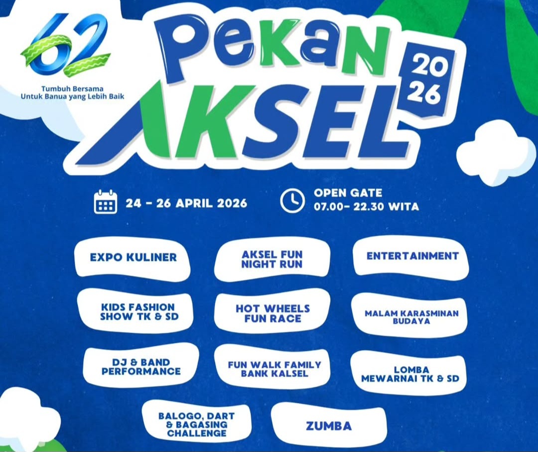 Jangan lewatkan kesempatan untuk menjadi bagian dari Pekan AKSEL 2026. Untuk informasi lebih lanjut, masyarakat dapat memantau media sosial resmi Bank Kalsel. (bay)