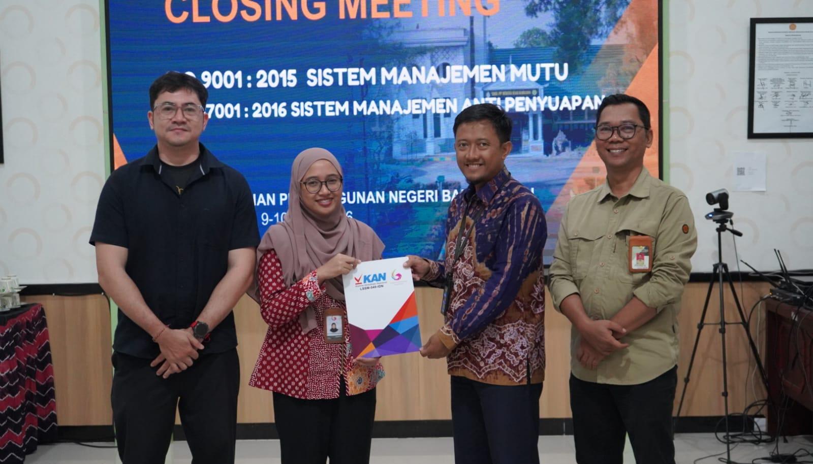 Pada penutupan audit, Lead Auditor Agustin Raudatul F bersama auditor Made Gede Prawira menyampaikan bahwa SMK-PP Negeri Banjarbaru direkomendasikan untuk mempertahankan kedua sertifikasi ISO tersebut.