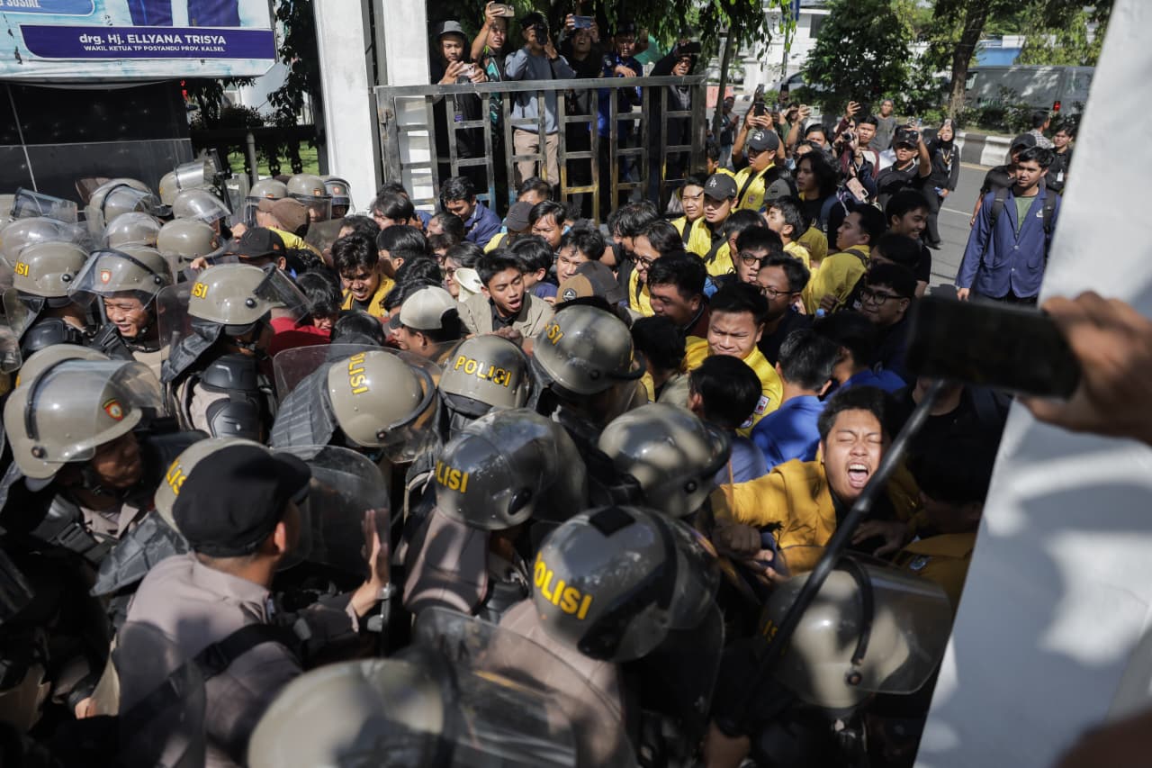 Dalam insiden tersebut, sejumlah mahasiswa nekat mendorong barikade aparat hingga menyebabkan beberapa personel kepolisian terjatuh. Situasi pun sempat mencekam dan aparat meningkatkan kewaspadaan.