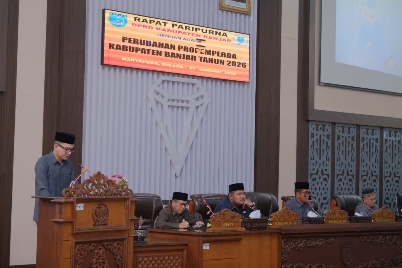 Dewan Perwakilan Rakyat Daerah (DPRD) Kabupaten Banjar menggelar Rapat Paripurna dan menyepakati perubahan Program Pembentukan Peraturan Daerah (Propemperda) untuk Tahun 2026, Selasa (27/1/2026).