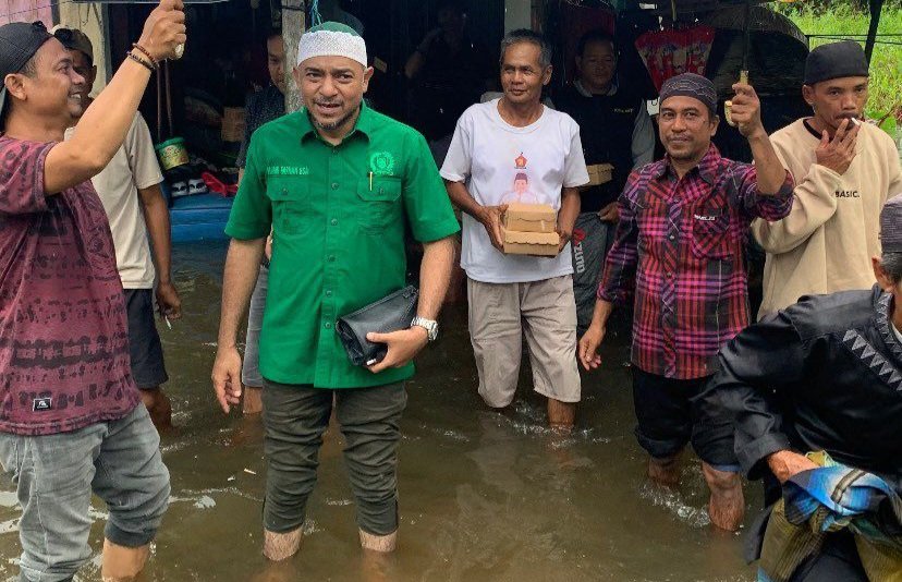 Anggota Komisi III DPRD Provinsi Kalimantan Selatan, Habib Farhan BSA meninjau banjir di wilayah Kabupaten Banjar. (Foto: Leon/Koranbanjar.com)