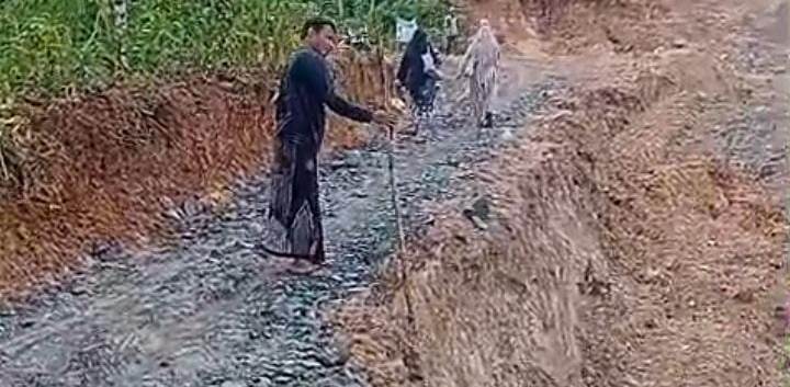Hari ini Sabtu (3/1/2026) diketahui kondisi Jalan Desa Gunung Ulin kembali mengalami longsor atau ambrol terlihat dari rekaman video yang dikirimkan warga setempat. Malah kerusakan ambrolnya semakin parah. (kan/dya)