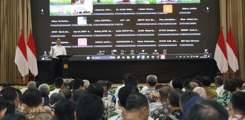 Serta, Kepala Dinas Pertanian Provinsi dan Kabupaten/Kota se-Indonesia di Auditorium Kantor Pusat Kementerian Pertanian, Jakarta (24/2/2026)