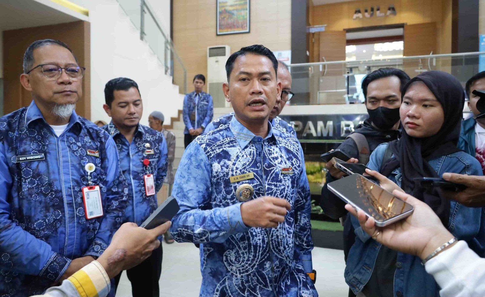Wali Kota Banjarmasin, HM Yamin saat wawancara dengan awak media di Kantor PAM Bandarmasih. (Foto: Leon/Koranbanjar.com)