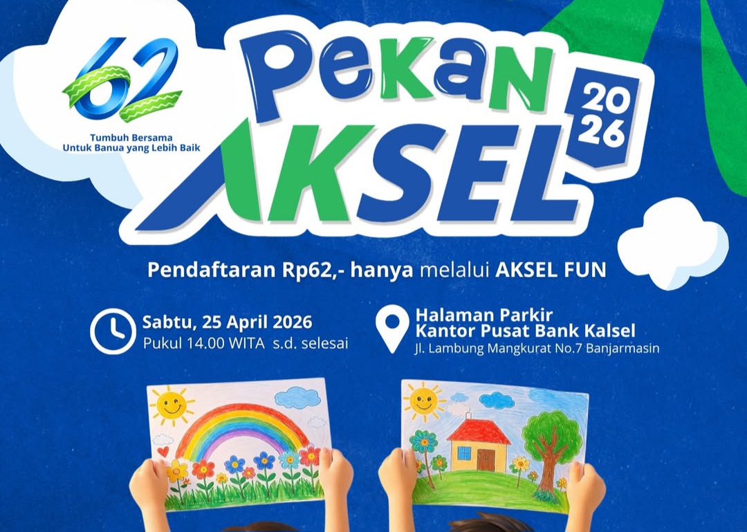 “Jangan lewatkan momen seru untuk belajar, bermain, dan berkreasi bersama di Pekan AKSEL 2026,” tulis Bank Kalsel dalam publikasinya, Rabu (22/4/2026).