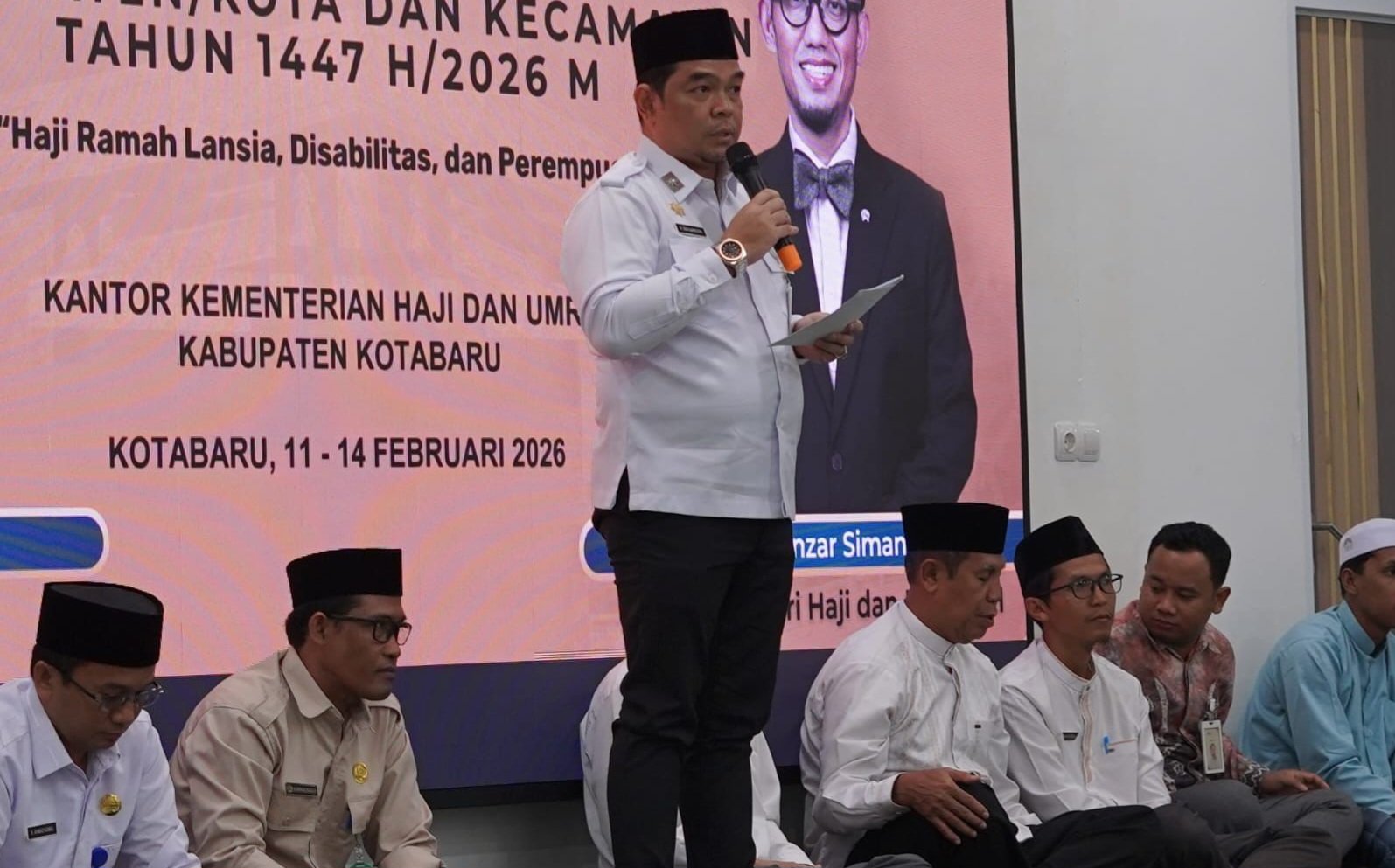 Pemerintah Kabupaten Kotabaru secara resmi membuka kegiatan bimbingan manasik haji terintegrasi tingkat Kabupaten dan Kecamatan bagi jemaah haji reguler Tahun 1447 Hijriah/2026 Masehi, Rabu (11/2/2026) pagi, bertempat di Masjid Apung Siring Laut Kotabaru.