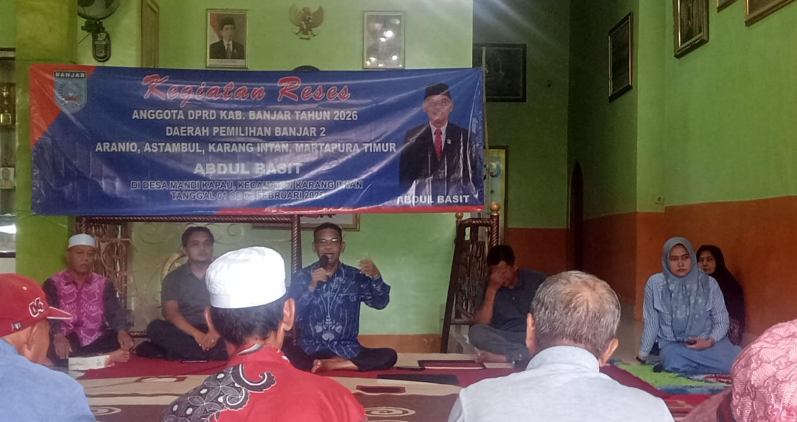Reses dilaksanakan anggota DPRD Kabupaten Banjar dari fraksi PAN Abdul Basit, dalam menyerap usulan dan aspirasi dari masyarakat, Senin (2/2/2026) sore di Desa Mandikapau Barat Kecamatan Karang Intan.