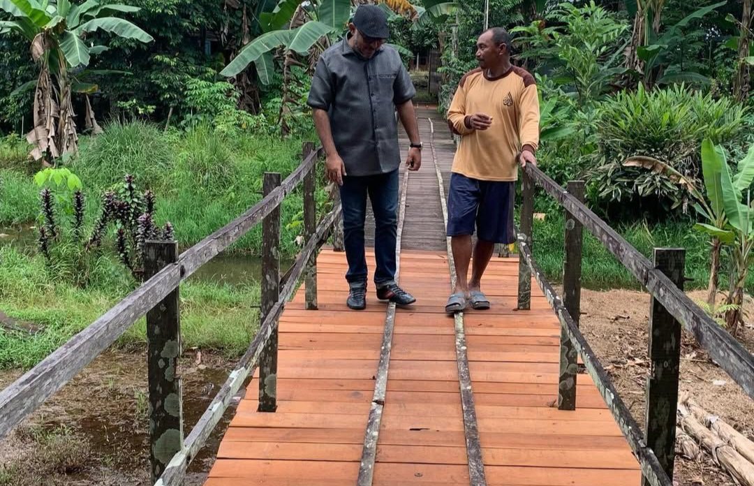 “Titian ini dipakai setiap hari oleh warga. Kalau lantainya bolong dan terendam banjir, itu sangat berbahaya. Karena itu saya berinisiatif membantu dengan dana pribadi,” tegas politisi Partai Kebangkitan Bangsa (PKB) tersebut.