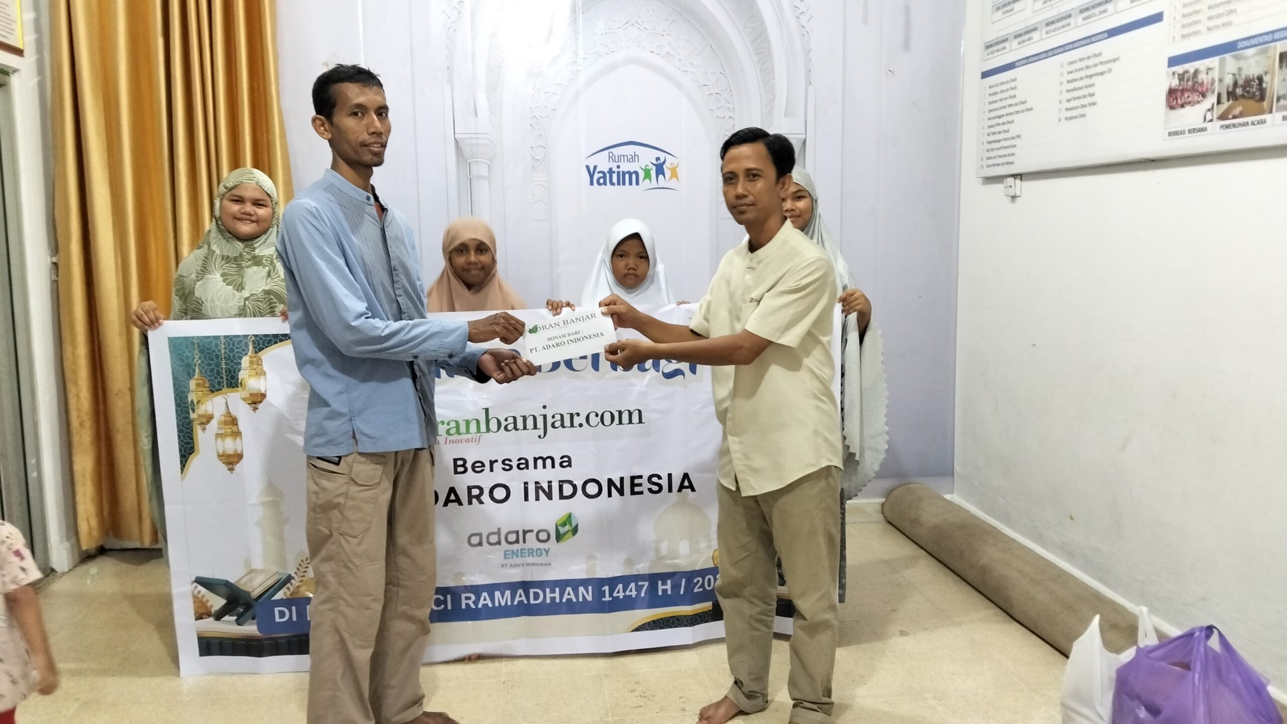 PT Adaro Indonesia tidak hanya memanfaatkan momen Ramadan 1447 Hijriah ini dengan berbagi bersama warga sekitar perusahaan tersebut namun juga donasi untuk panti asuhan di luar wilayah usaha dengan salurkan donasi kepada anak anak yatim dari Panti Asuhan Putri Muhammadiyah Martapura, Selasa (17/3/2026) sore.