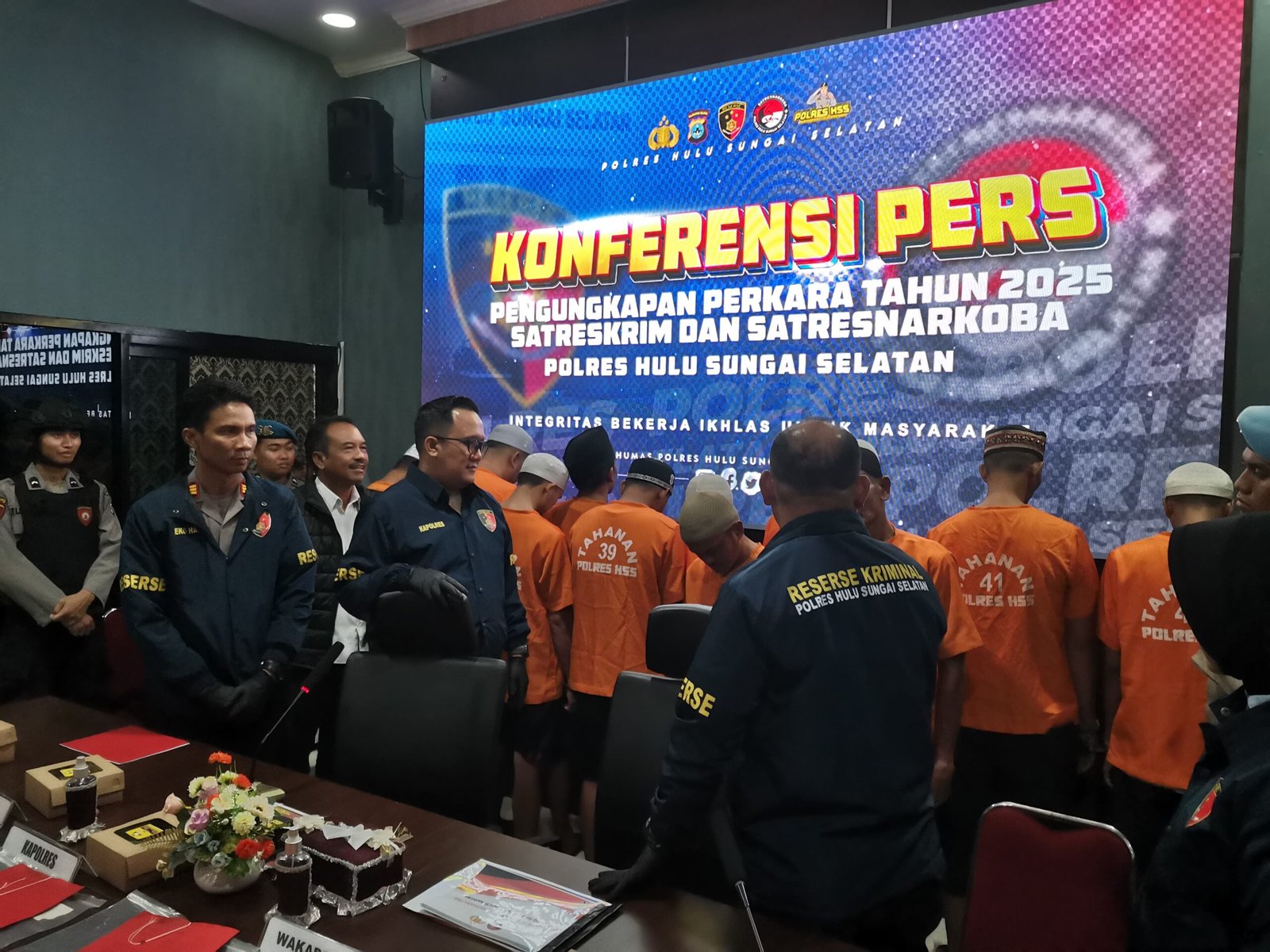 Kepolisian Resor (Polres) Hulu Sungai Selatan (HSS) menggelar konferensi pers, Jumat (26/12/2025) di Aula Mapolres HSS.