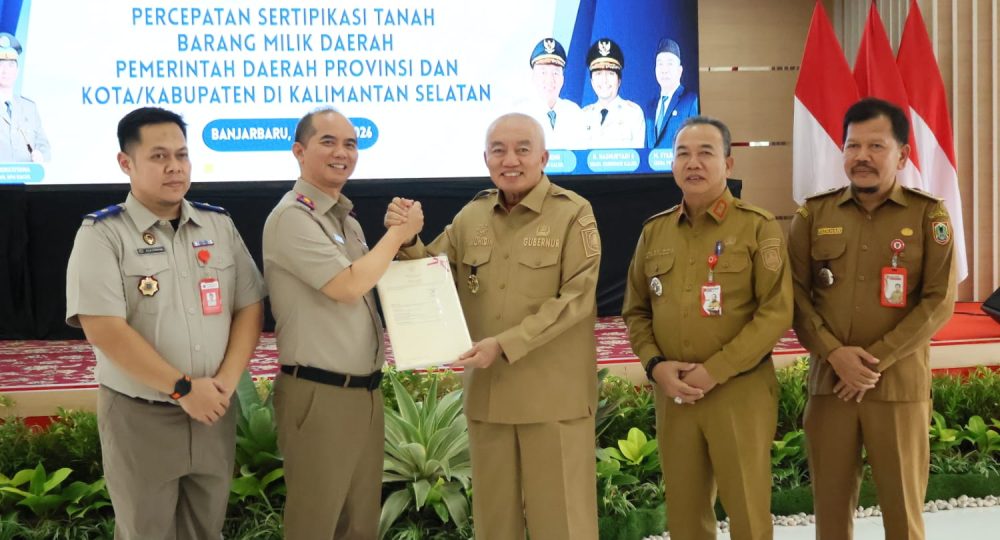 BANJARBARU, koranbanjar.com – Sertipikat diserahkan Kepala Kantor Wilayah BPN Provinsi Kalsel Budi Kristiyana pada Rapat Koordinasi (Rakor) percepatan sertipikasi tanah barang milik daerah (BMD) Pemerintah Provinsi dan Kabupaten/Kota di Kalsel, Senin (6/4/2026), bertempat di aula Kantor Wilayah ATR/BPN Kalsel, Banjarbaru.
