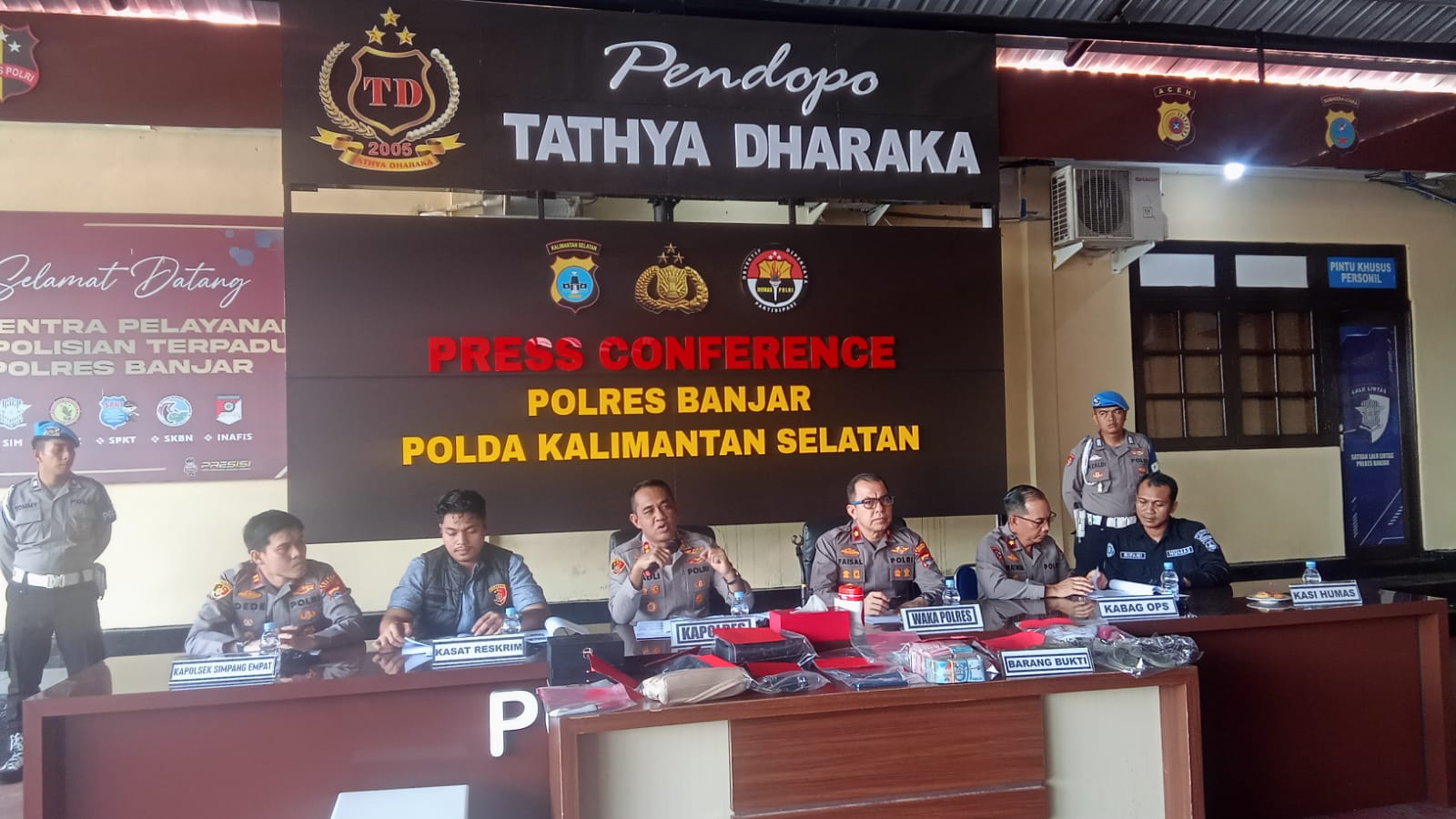 Konferensi pers digelar di Pendopo Tathya Dharaka Polres Banjar, Rabu (22/4/2026).