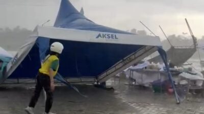 Disporbudpar Batola Gerak Cepat Tangani Tenda Roboh Akibat Angin Kencang di Pasar Ramadan Jembatan Barito