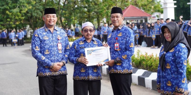 Wakil Bupati Banjar Said Idrus Al Habsyi menyerahkan piagam Penghargaan Brigade Informasi Daerah melalui Portal Berita InfoPublik Tahun 2025, Rabu (18/2/2026) pagi di Halaman Kantor Bupati Banjar, Martapura.