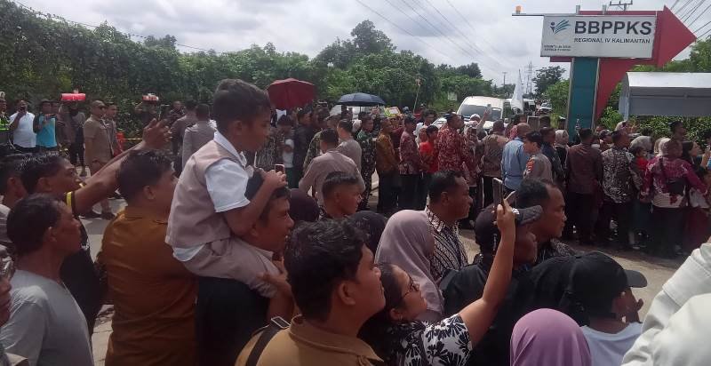 Dari pantauan pewarta di lapangan, sejak pagi warga tampak berbaris dan bergerombol di sisi jalan depan Balai Besar Pendidikan dan Pelatihan Kesejahteraan Sosial (BBPPKS) Regional IV Kalimantan, lokasi yang dilintasi rombongan presiden.
